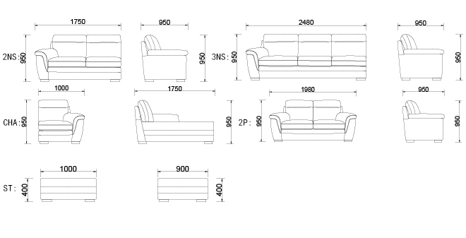 单扶手贵妃位:(CHA:1000*1750*950mm)