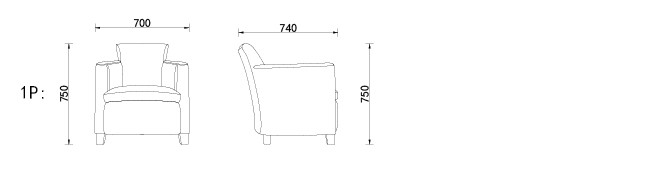 双扶手单人位:(1P:700*740*750mm)